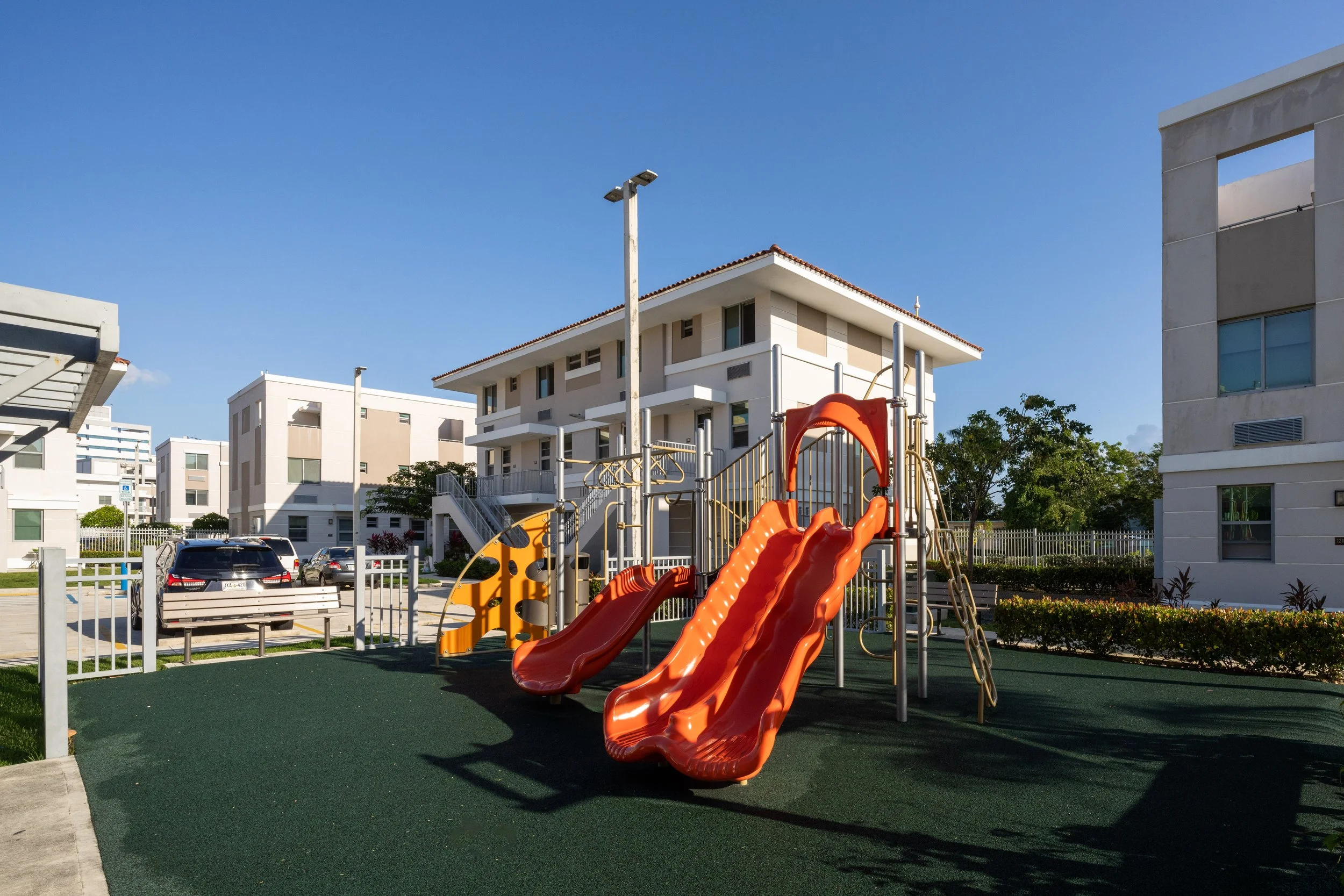The original Las Gladiolas projects, built in 1969 (and demolished in 2011) were the first buildings of their kind to be built in Puerto Rico and soon became the symbol of —and synonymous with —all that was wrong with high-rise, high-density public housing. Today, Renaissance Square has been entirely reconceived as a mixed-use, mixed-income community.
